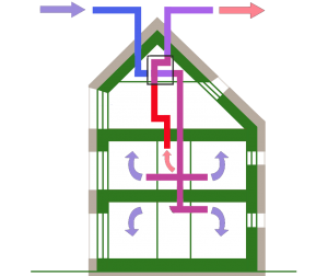 Las personas y los electrodomésticos generan calor, éste es reaprovechado por el sistema de ventilación, al precalentar el aire limpio entrante antes de expulsar el aire viciado.